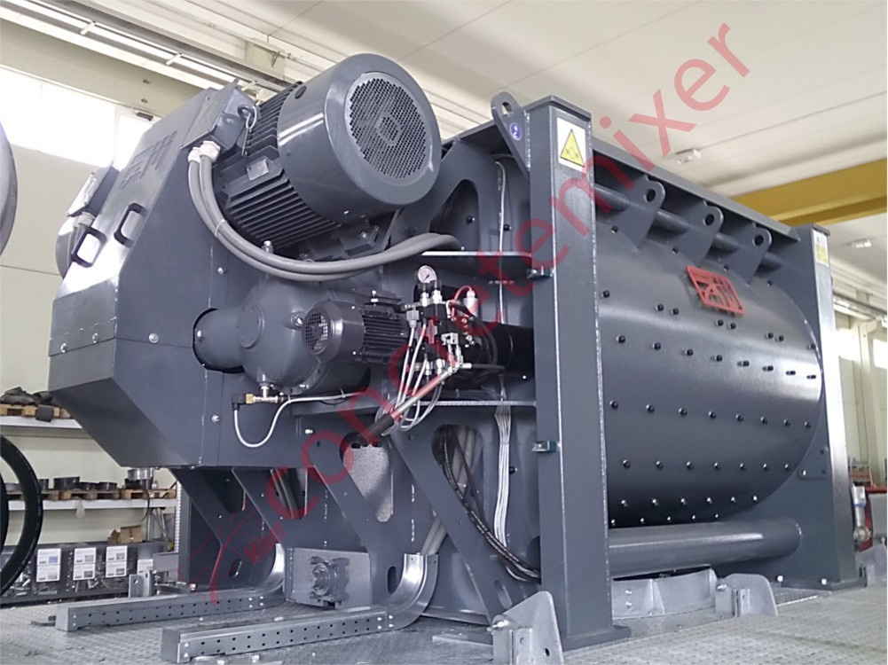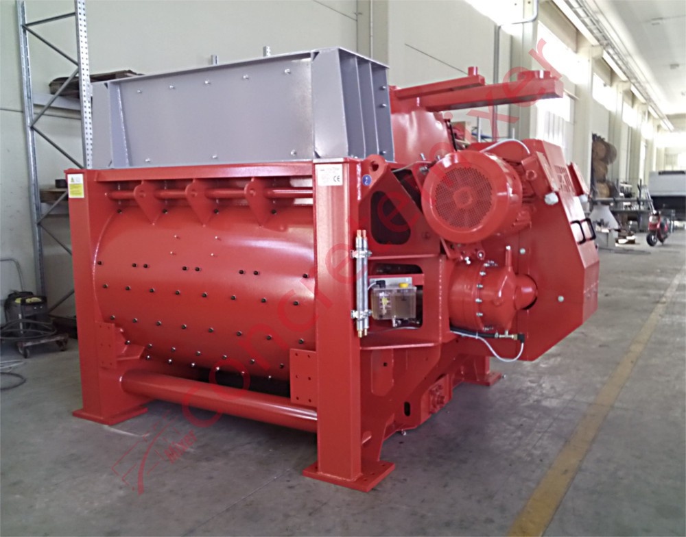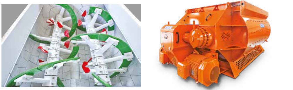The movement of mixture inside the mixer is generated by special helical paddles and by paddles orthogonal to the axis of rotation. The desired grade of homogeneity is reached quicker, with lower noise and less vibrations.