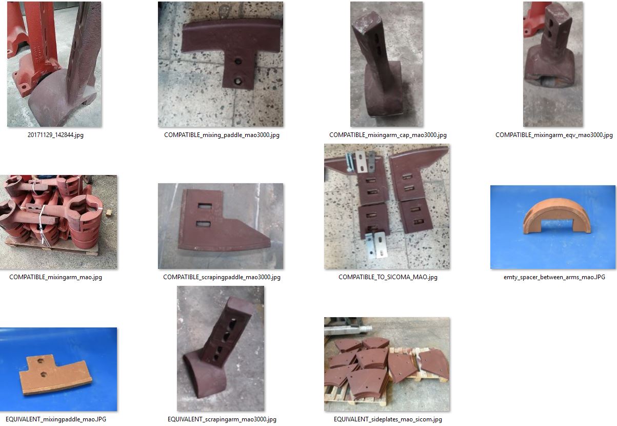 Satışa Sunulan Parçalar Sicoma üretimi MAO1500, MAO3000,MAO 4500, MAO6000,MAO7500, OMG 750, OMG 1500 model beton karıştrıcılarının aşınan muadil eşdeğer yerli yedek parçalarıdır.