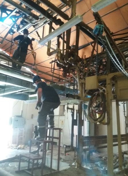 Çelik yapılar tamamen projelendirierek, markalama demontaj öncesi yapılmakta, yaklaşık 20 adet motor-redüktör-zincirli konveyör hattı, hidrolik kontrollü yükselen platformlar, kesim ünitesi, filtrasyon ve havalandırma ünitesi, sünger taşıma konveyörleri ve paketleme makinaları tüm ayrılabilen ve taşınabilen boyutlarda demontaj yapılmakta ve paketleme yapılmaktadır.